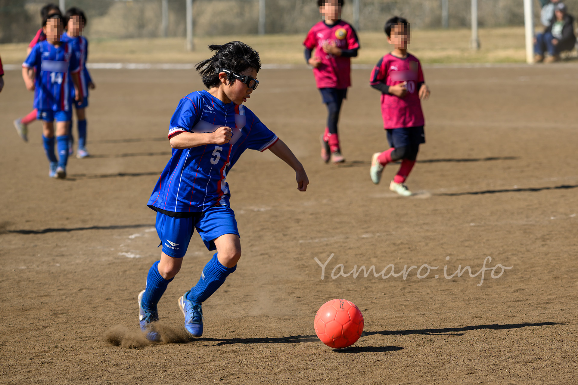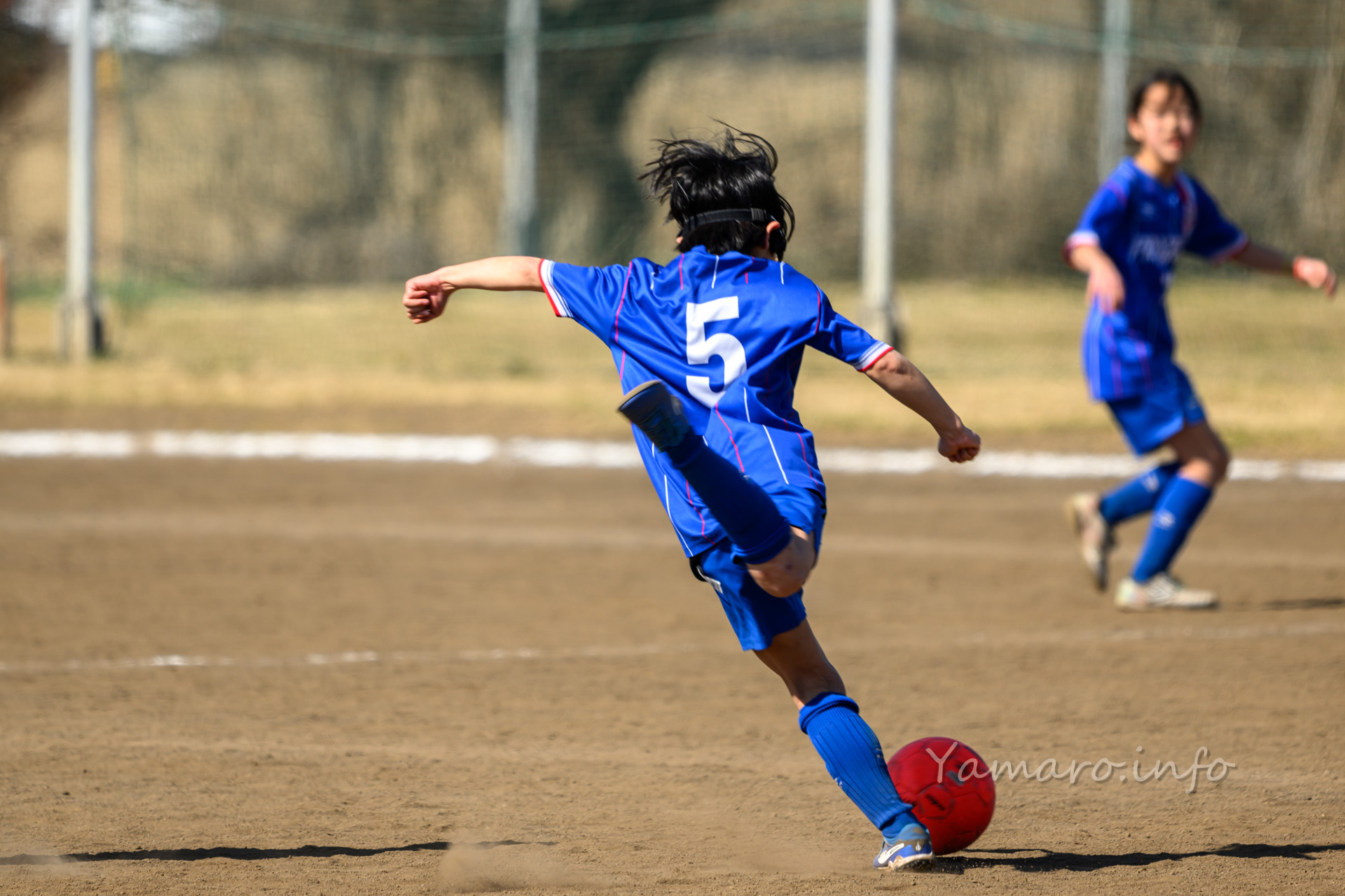 コートの関係で、横からの観覧がド逆光で砂埃がひどいので、ゴールポスト後方からの撮影でした。
