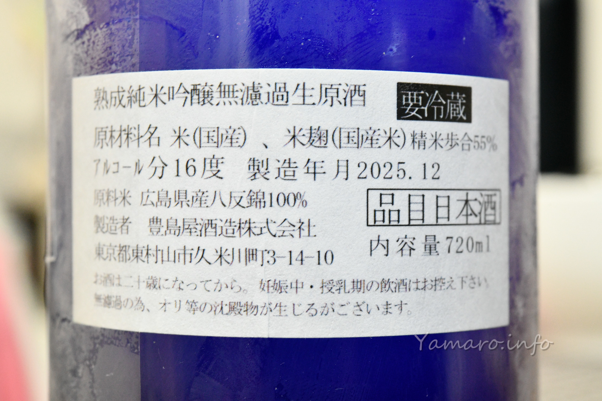 熟成!実はラベルだけで買ったお酒ですが、熟成酒だったとは。広島県産の八反錦を精米歩合55%で醸したお酒です。