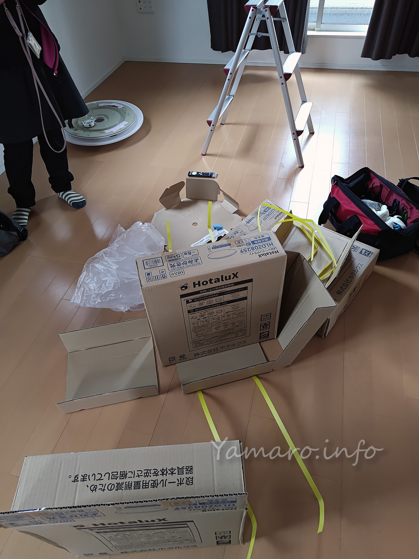 そんなわけで自宅は貸していますが、先週借主が退去したので、このタイミングで内部の確認と、ついでに2階のシーリングライトをを蛍光灯からLEDに変更することに。