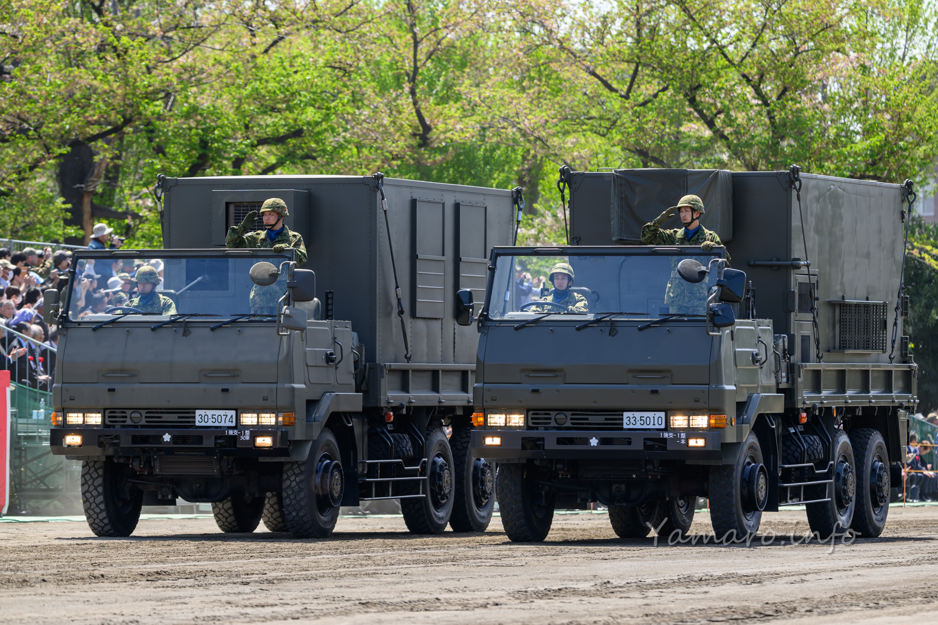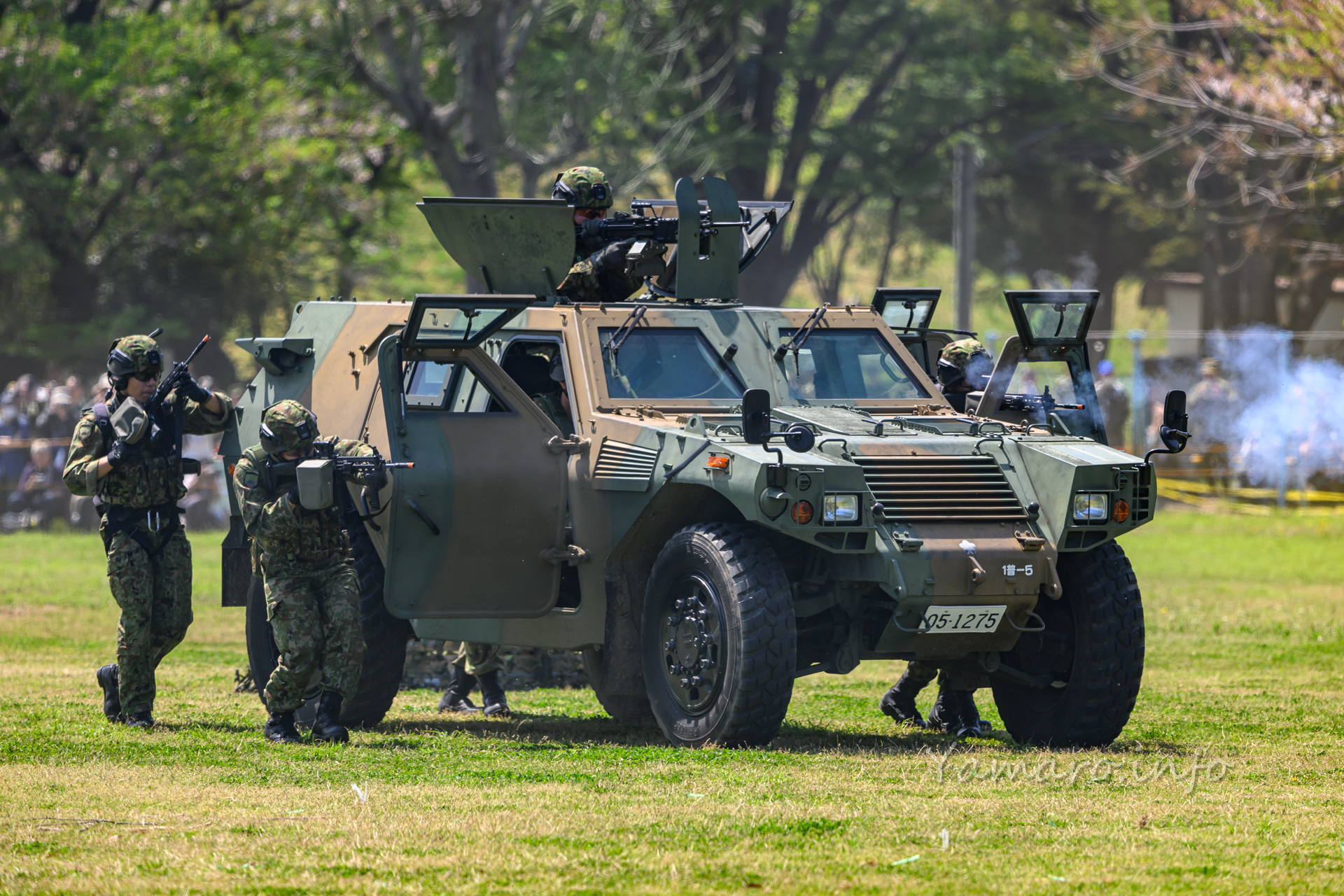 練馬駐屯地に司令部を置く第1師団の記念行事でもあります。第1師団は朝霞駐屯地や立川駐屯地なども含まれているため、車両の多くは練馬駐屯地から来ていますね。