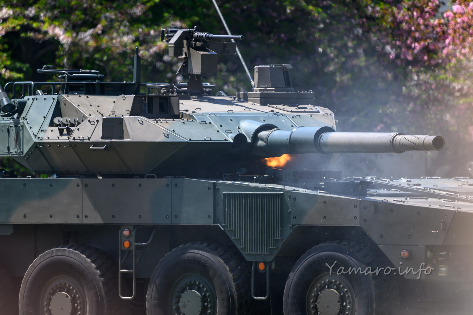残念ながら16式の発砲炎が撮れず…。富士総合火力演習のようにいつ発砲するかいまいち案内とか無線の会場内放送がないので…。まあ連写しまくっていれば済む話なんですけど。