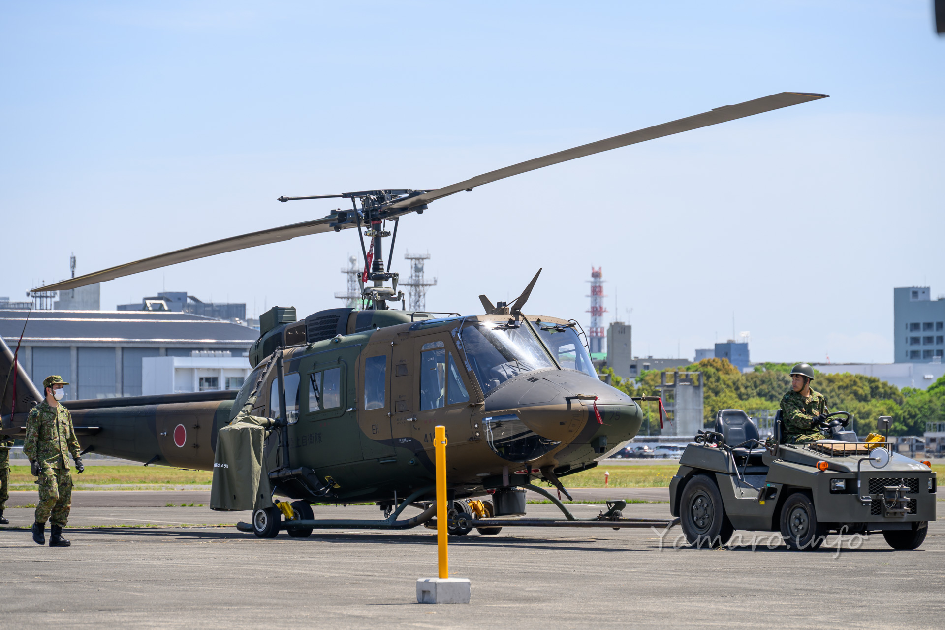 まだ数の上では主力のUH-1Jを比較すると、UH-2はやはりボディ上部のエンジンからプロペラにかけてが一気にモダンになった印象です。
