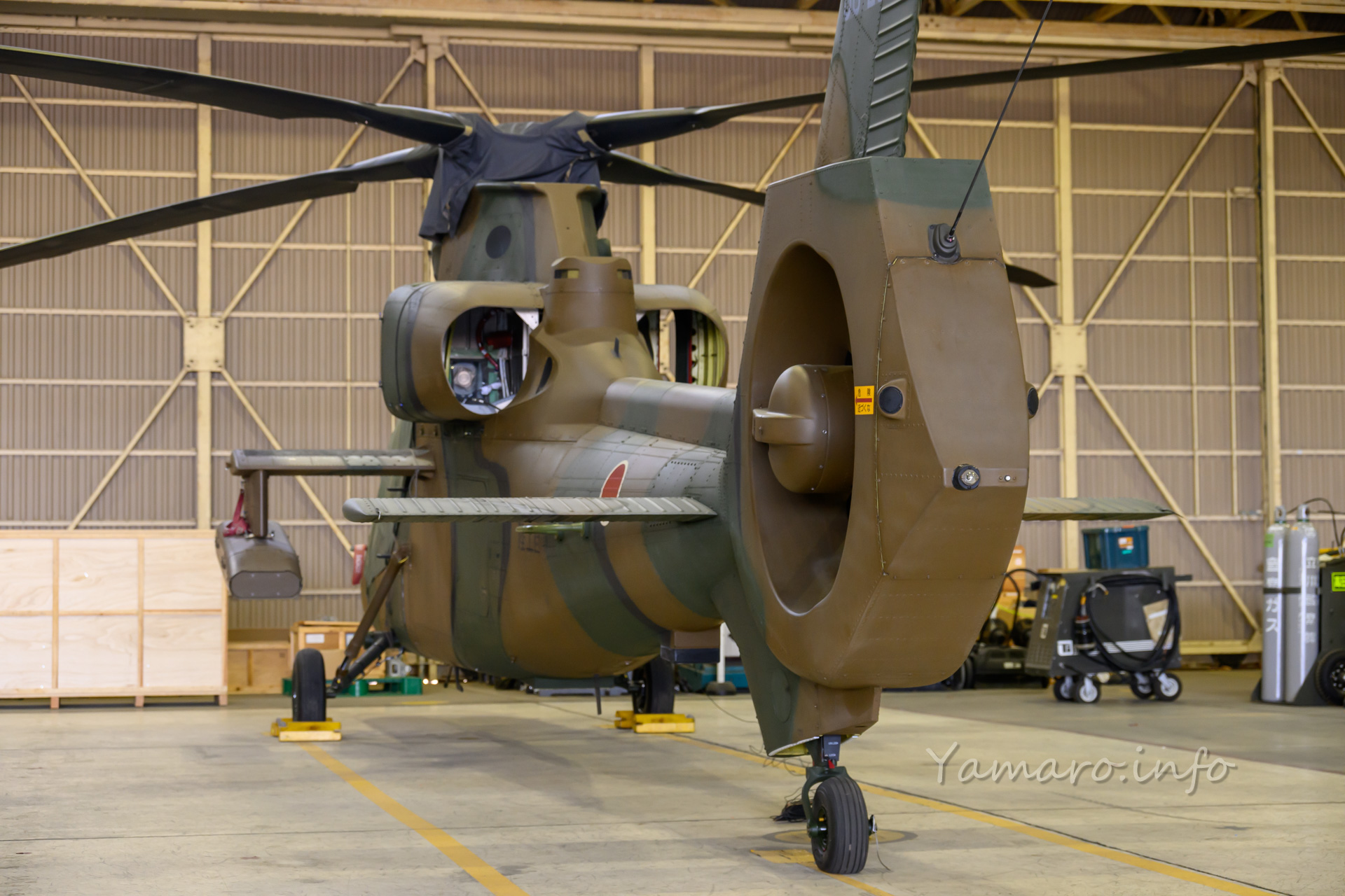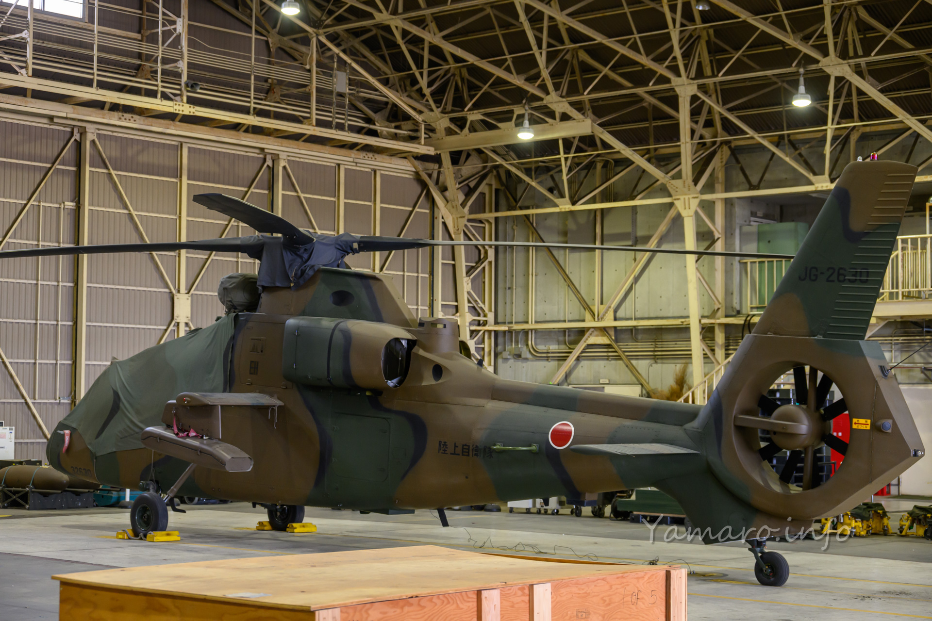 そしてその奥には、エンジンを外されたOH-1が。
