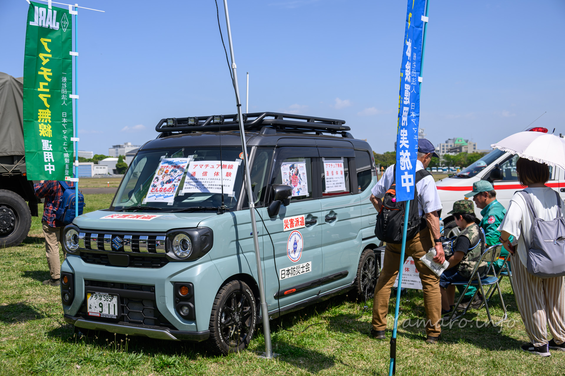 面白いのは日本アマチュア無線連盟(JARL)も災害時の通信手段としてアマチュア無線を実演していました。