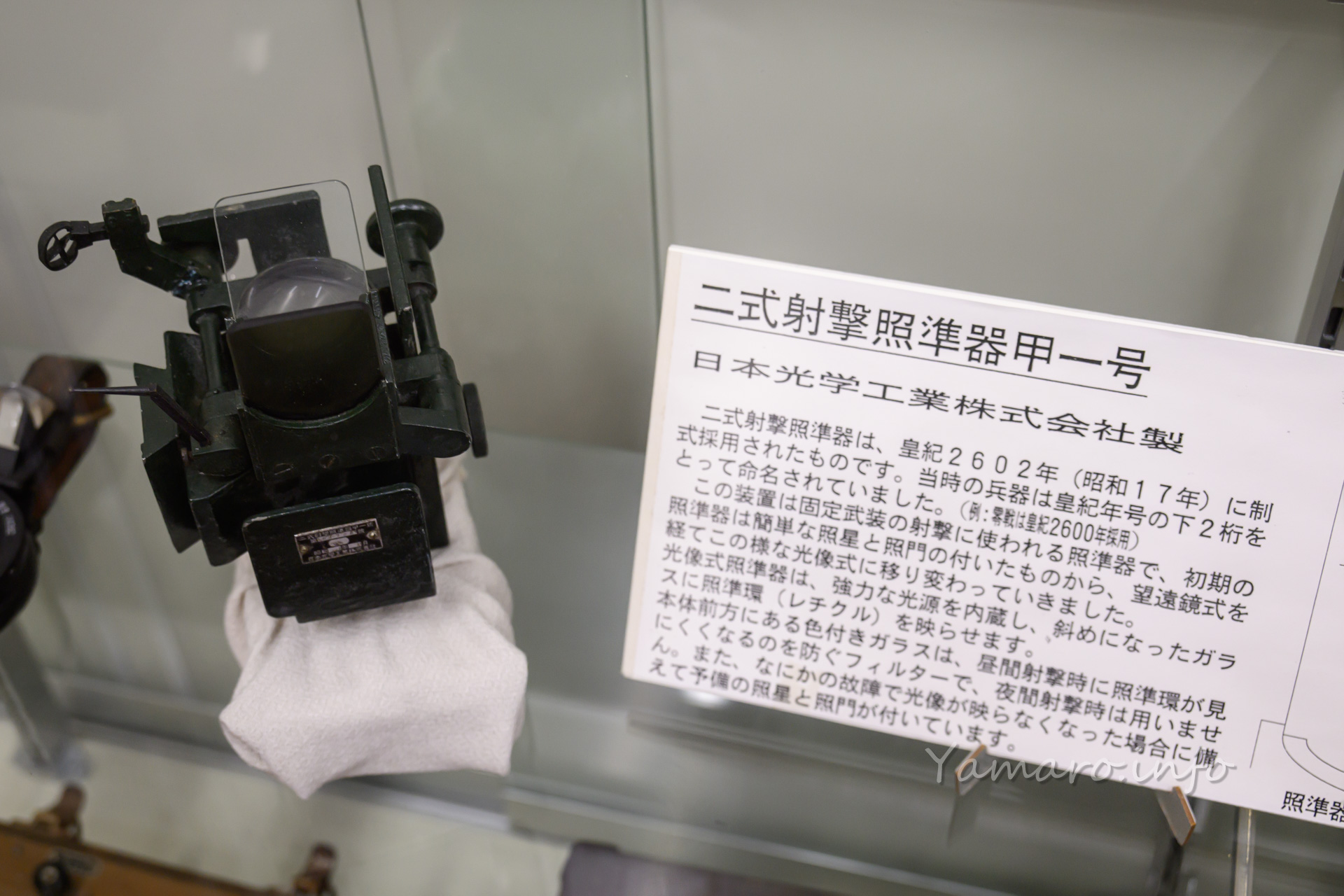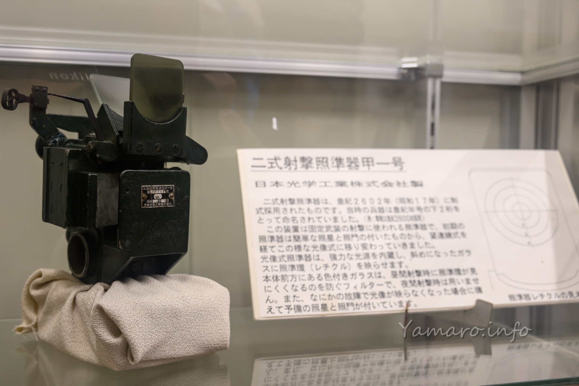 日本光学工業製の二式射撃用照準器甲一型が! 日本光学工業は現在のNikon(ニコン)です。戦時中や戦前はこうした軍事用の光学機器も製造していました。