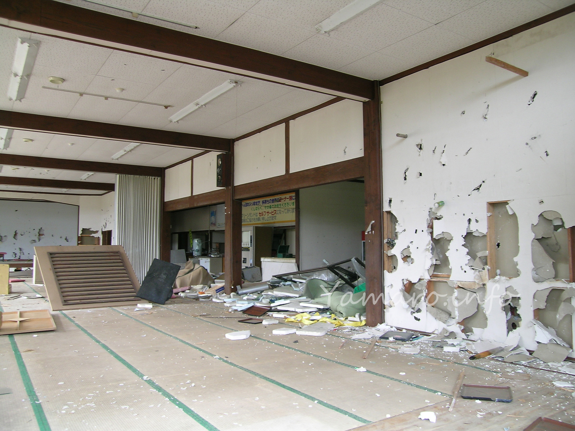 少し斜面に登って建物を確認。昔のしっかりした日本家屋という印象。積雪が殆どない地域なのも、ここまで倒壊せずに持っている要因の1つかも。ただ、これだけ斜めになっていると、あと数年か、といったところでしょう。