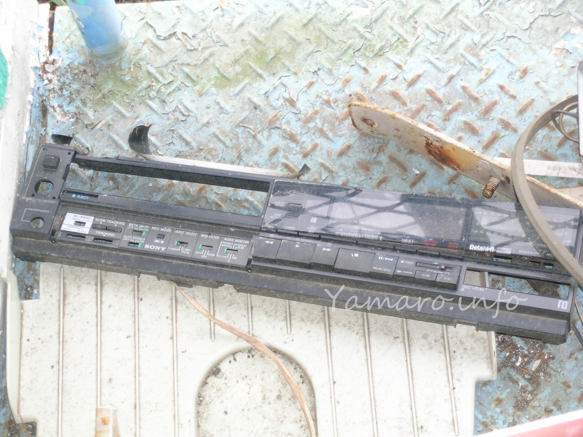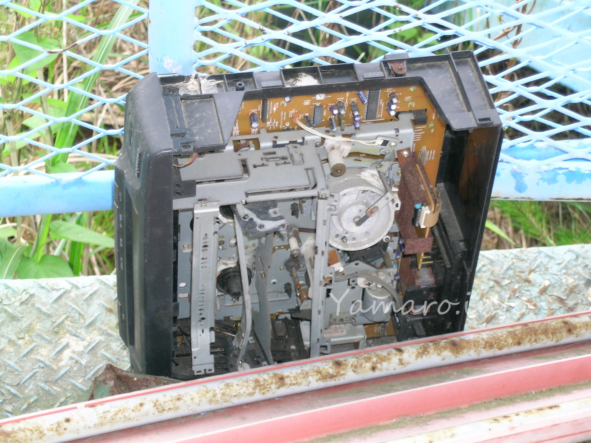 懐かしい2槽式洗濯機が転がっていて、その上には柚子?が生えていました。洗濯機のホースが劣化て、カールコードのように。