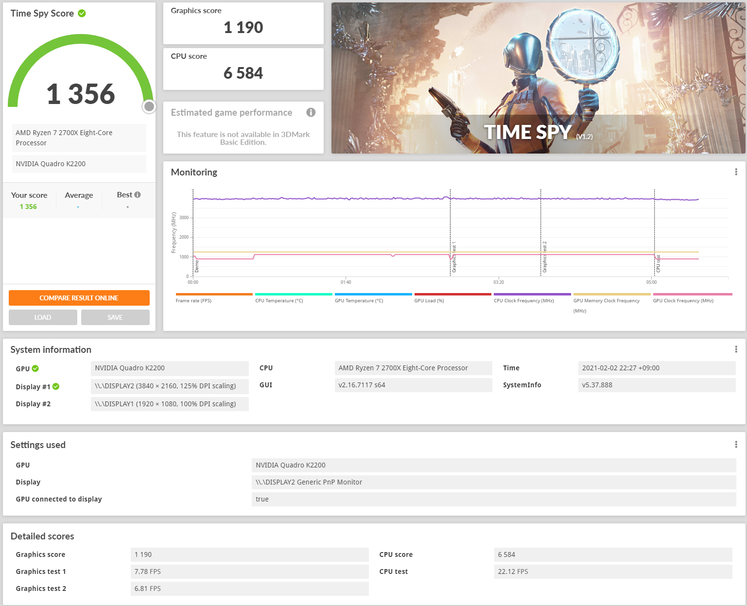 さすがに、全然スコアが違うし、デモ動画でも滑らかさが違いました。P2000は、GeForceのエントリークラスくらい?