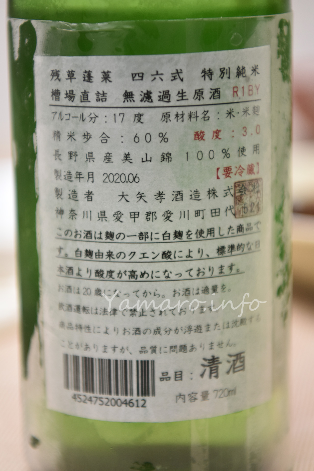 あまり酒処のイメージがない神奈川県のお酒ですが、Yamaroの大好きな酒造の1つでもあります、大矢孝酒造の「残草蓬莱(ざるそうほうらい)」のフレッシュな夏酒、純米吟醸 Queeen 薄にごり生原酒です。