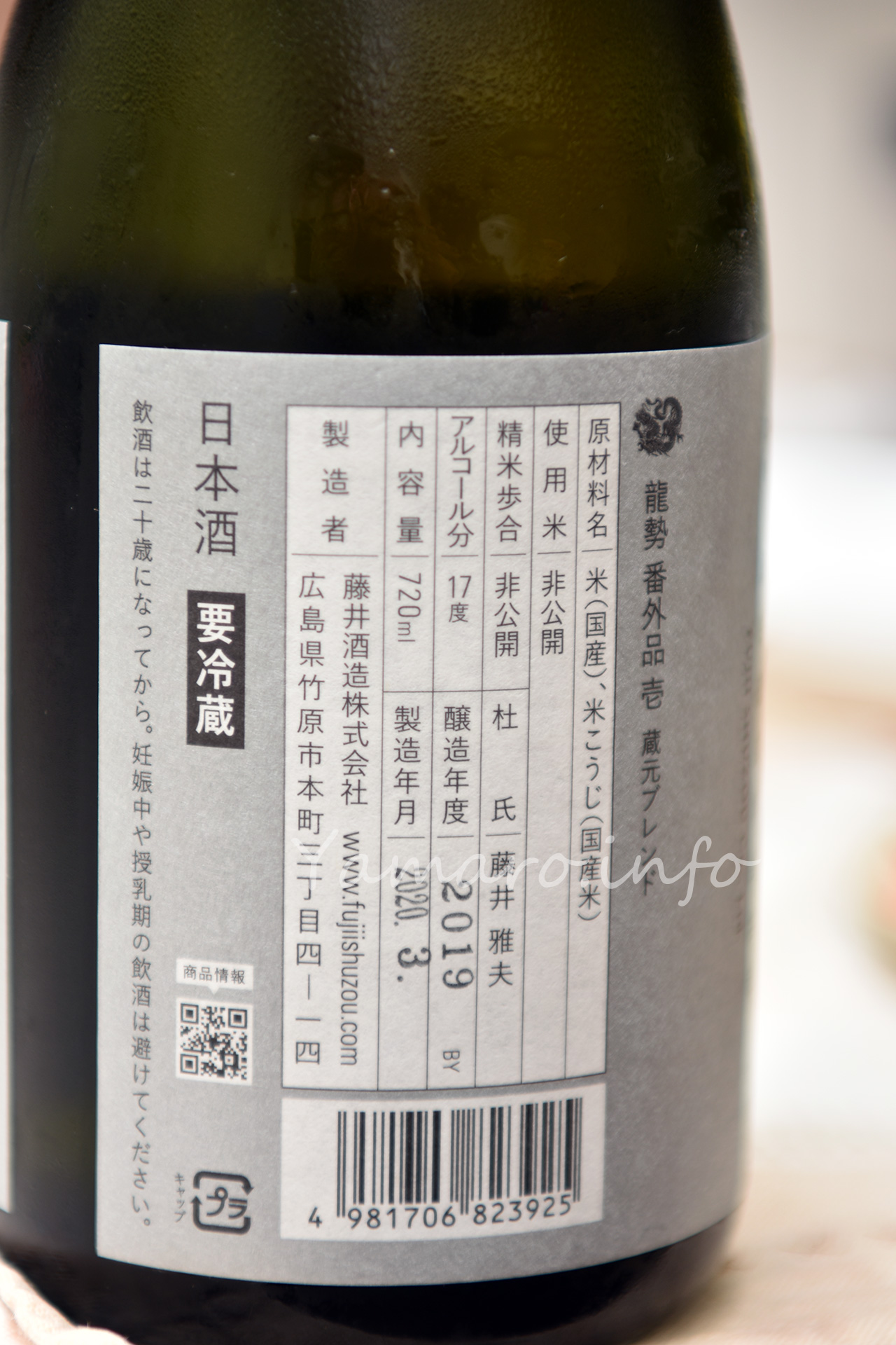 後輩の出身地広島県のお酒です。龍勢は何度か飲んだことがありますが、こちらは「番外品 其ノ壱」という、蔵元曰く