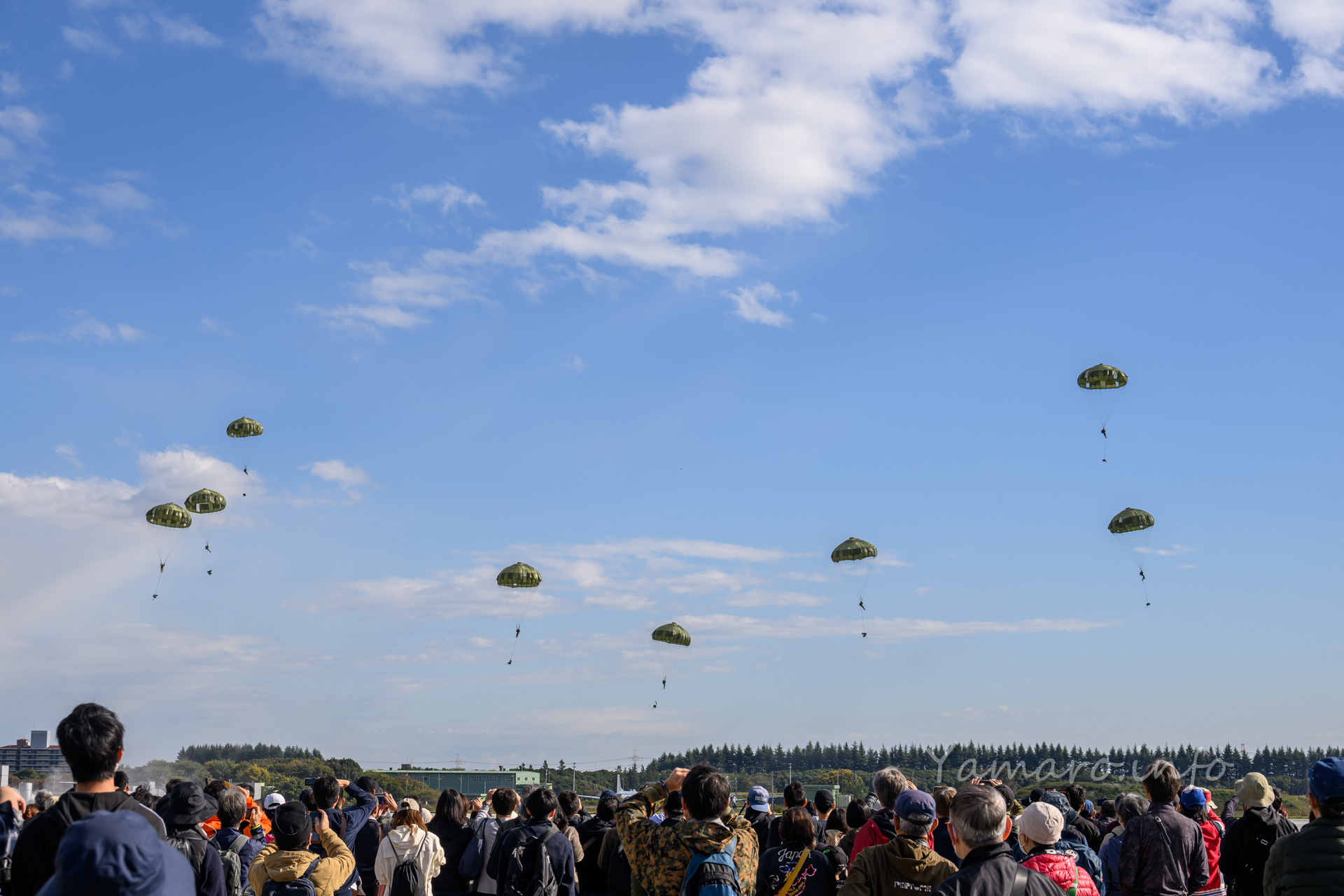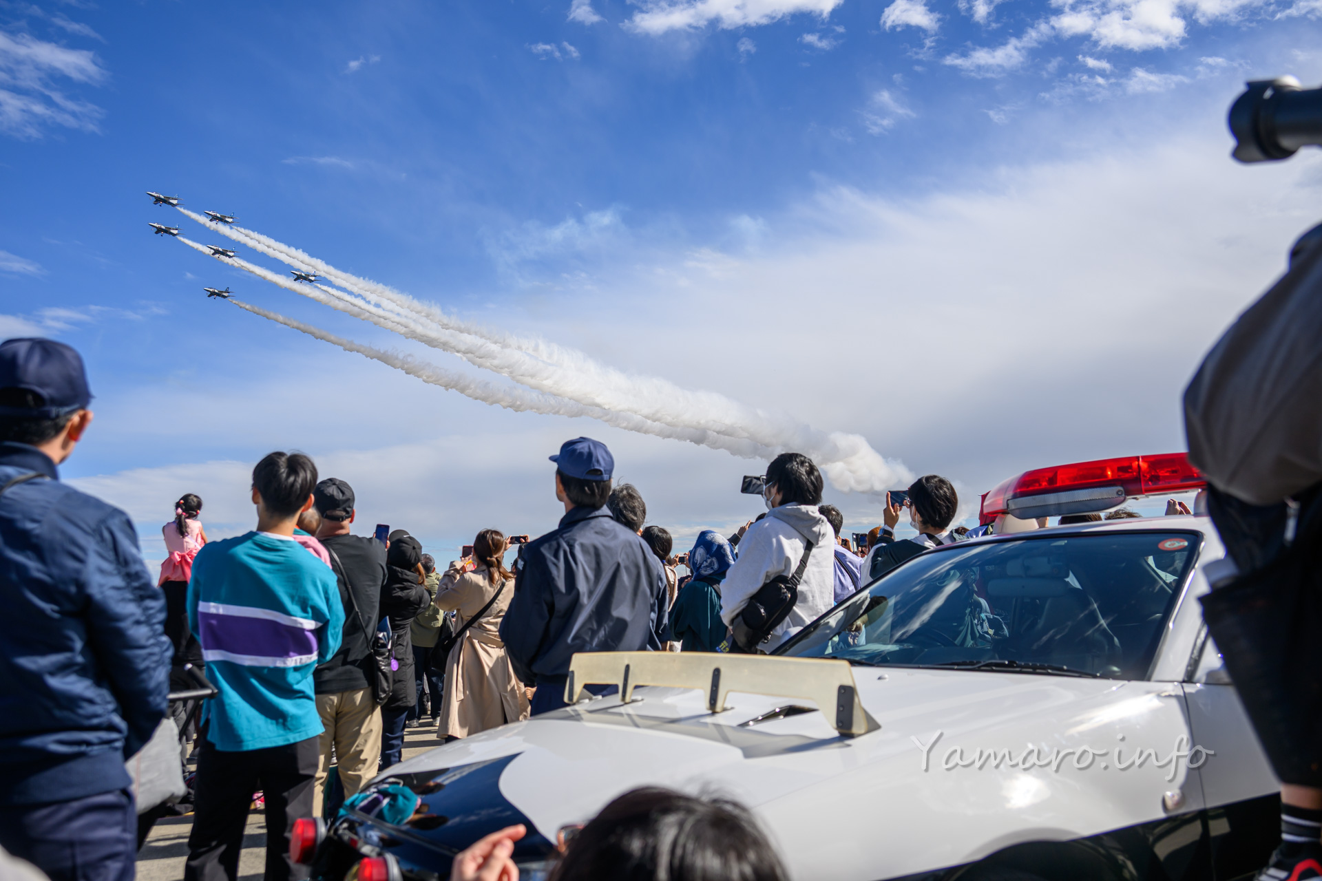 2025年は午前中にブルーインパルスの飛行展示実施。ブルーインパルス狙いの観客も多く、今年は去年より入場者数が1万人多い26万人とのこと。