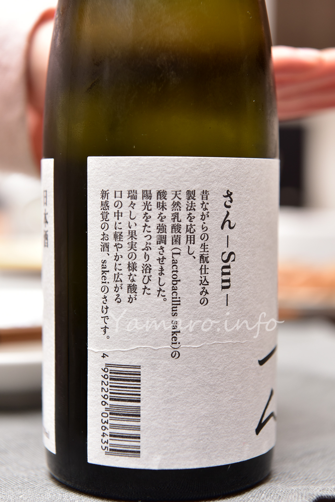 最後は前日に引き続き、大和川酒造店のお取り寄せのお酒ですが、こちらには「弥右衛門」のブランド名が付かない、昨年初めて出来たお酒、「SUN(さん)」を呑んでみました。