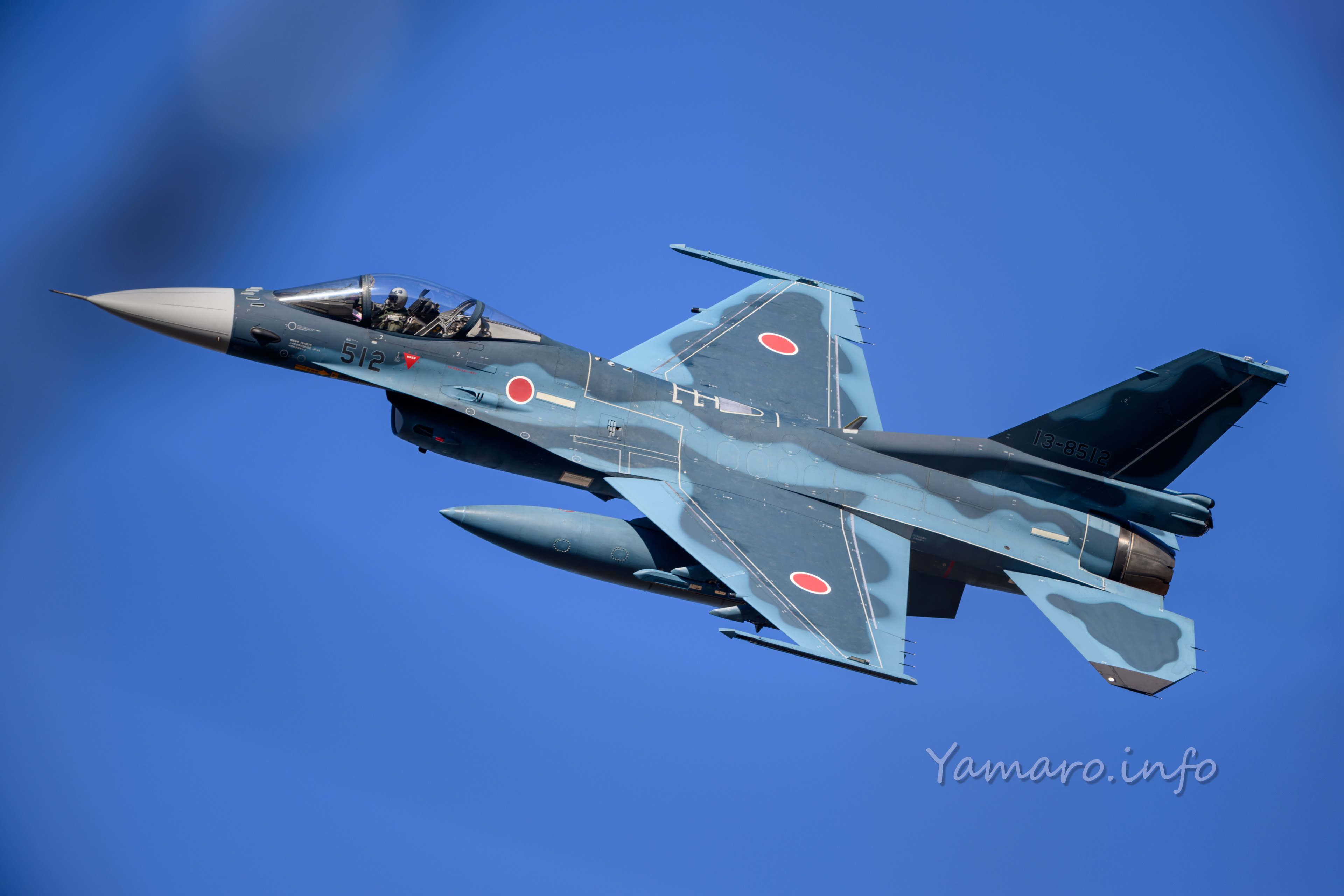 560号機だけ、AAM-3のキャプティブ弾を装着。AAM-3もファントムが飛んでいたときはよく見ましたが、案外F-2で装着しているシーンは少ない気がします。後継のAAM-5はミサイルが長くなったので、F-2用にも専用ランチャーが必要なようですが、まだ3SQの機体で装着しているのは見たことがないですね。