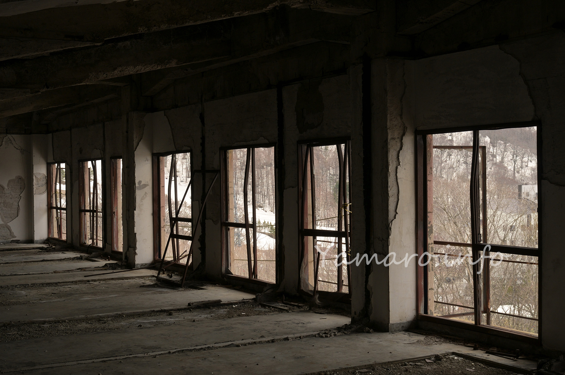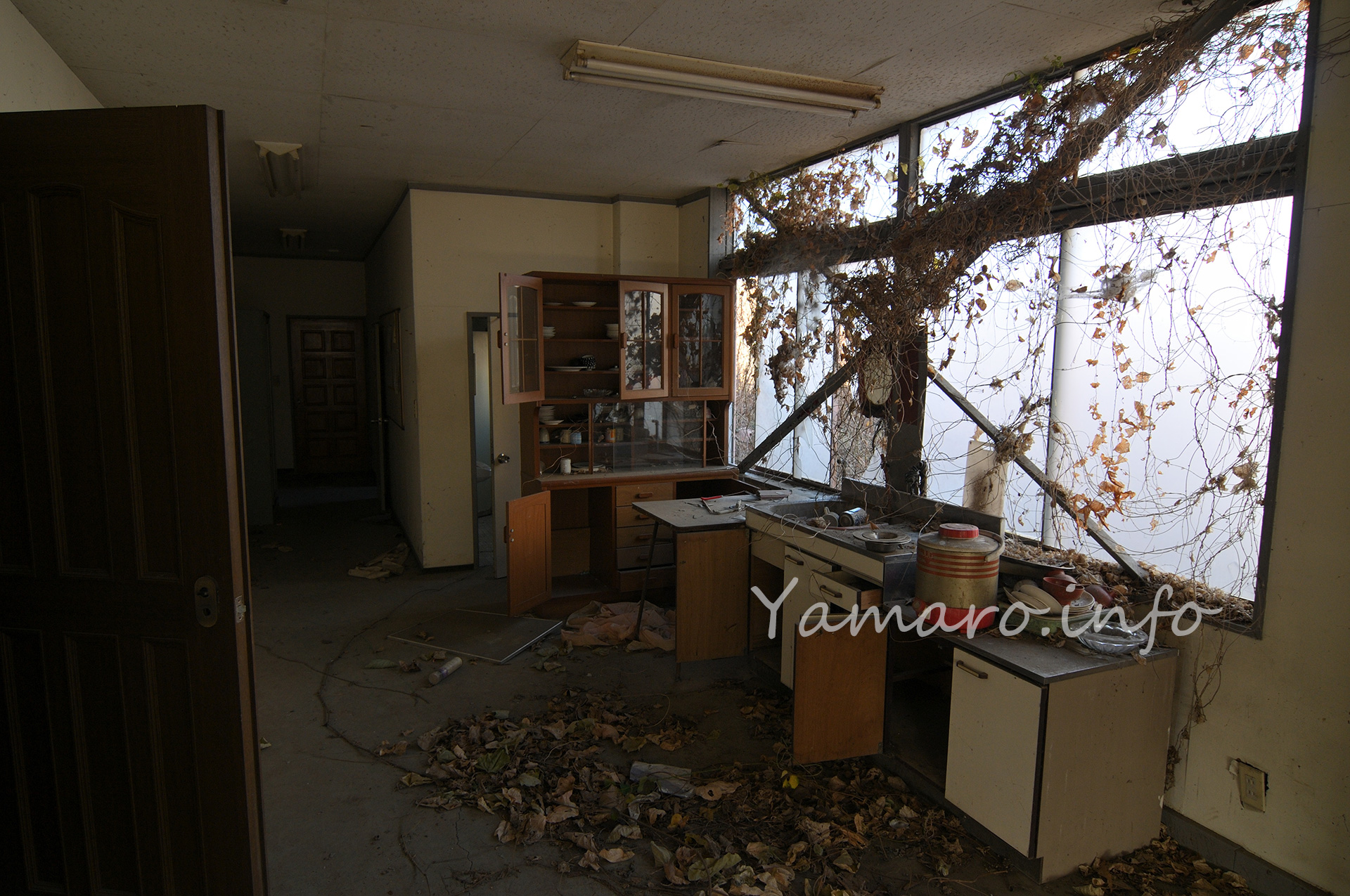 前回の訪問から3年、経年による一部破損が見られ始め、雑草も伸びた状態。2007年にいた猫たちは姿を消し、火災報知器のランプも消灯していることから、電気も切られてたようです。